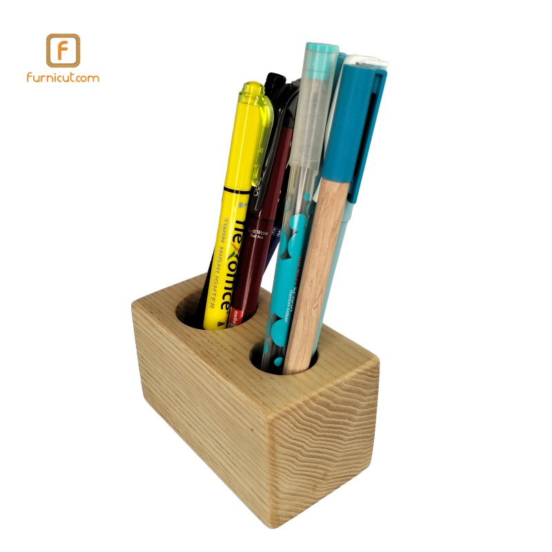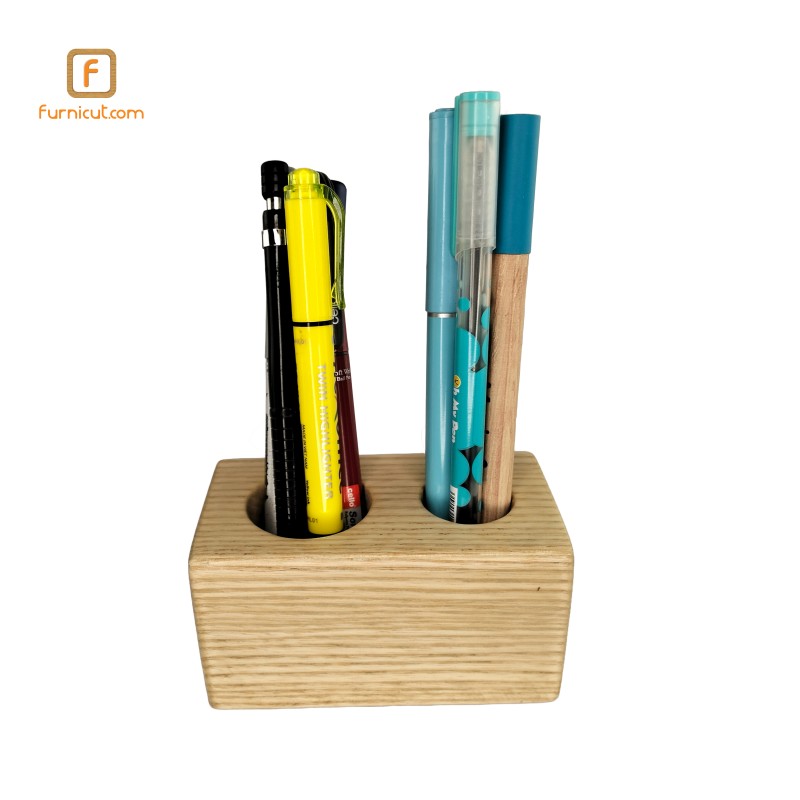 This Wooden Pen Holder is where organization meets elegance in a sleek and functional design. Crafted to perfection, this holder features two spacious holes to house markers or similar objects, alongside four smaller holes for pens or pencils, ensuring every writing instrument has its place.